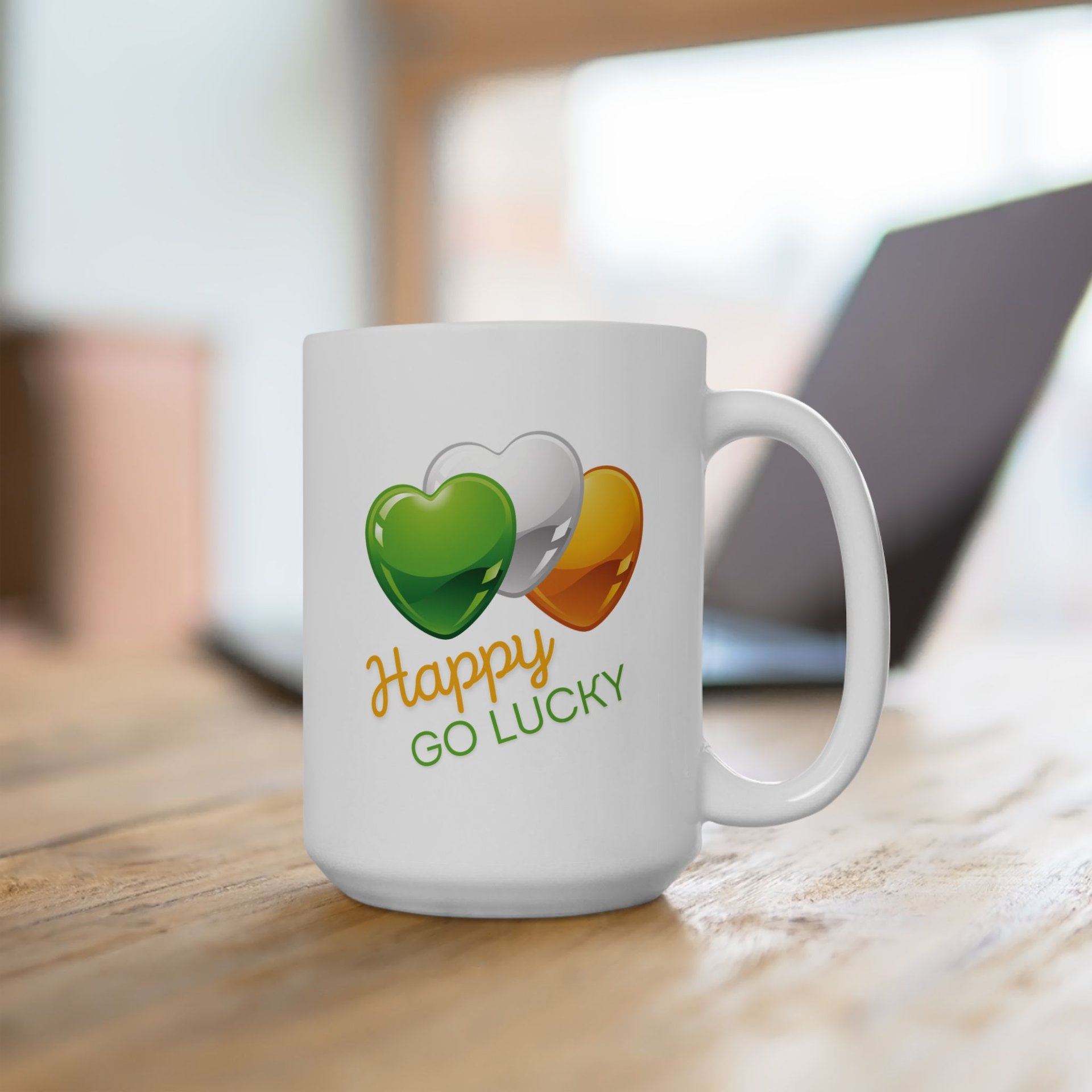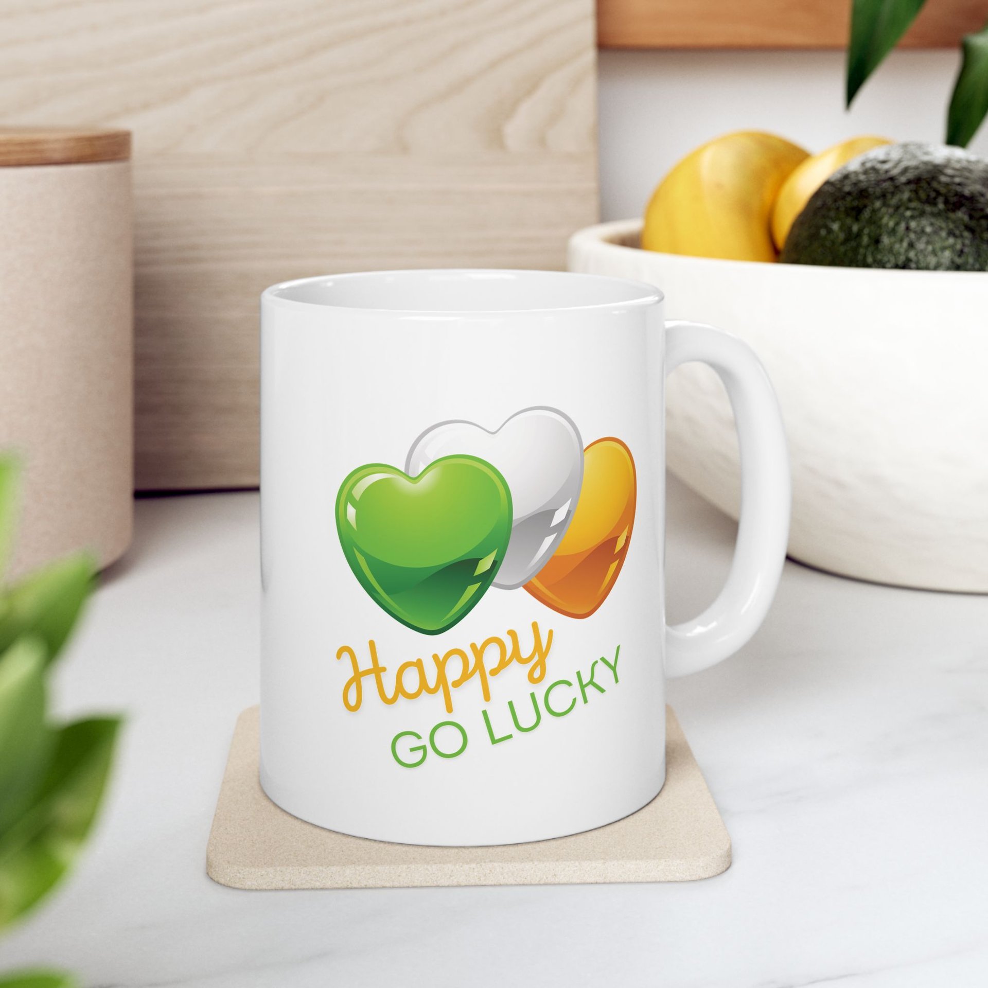 Flag of Ireland Colors Happy Go Lucky Hearts St. Patrick's Day Mug