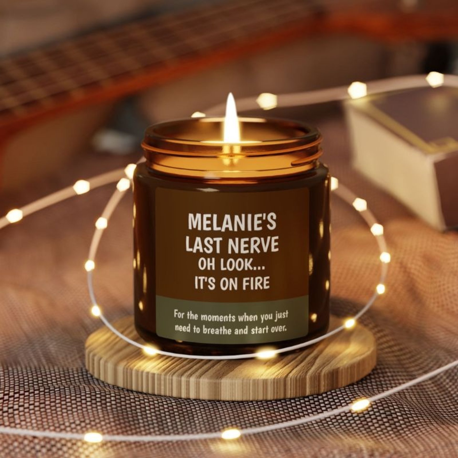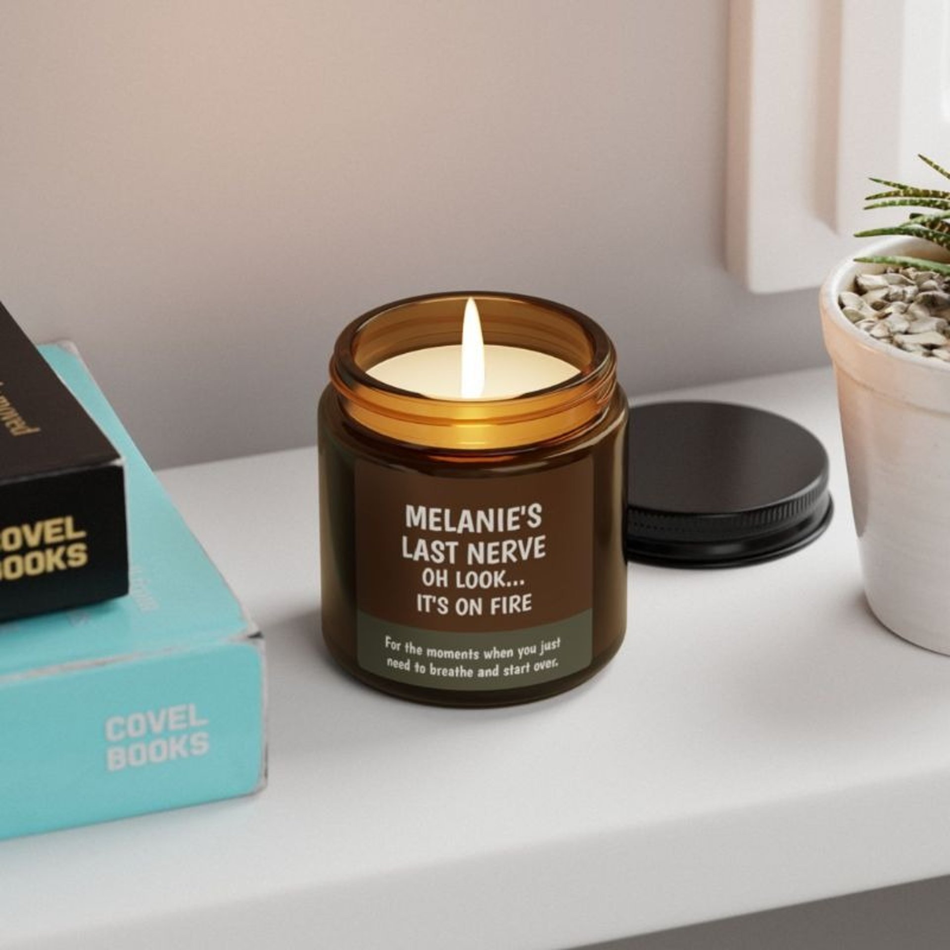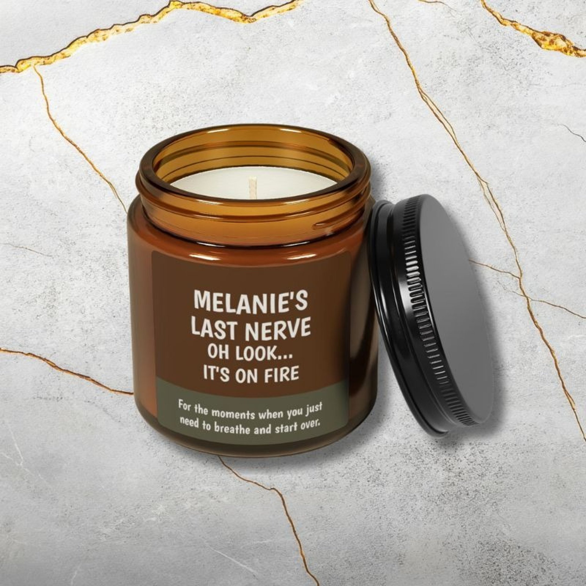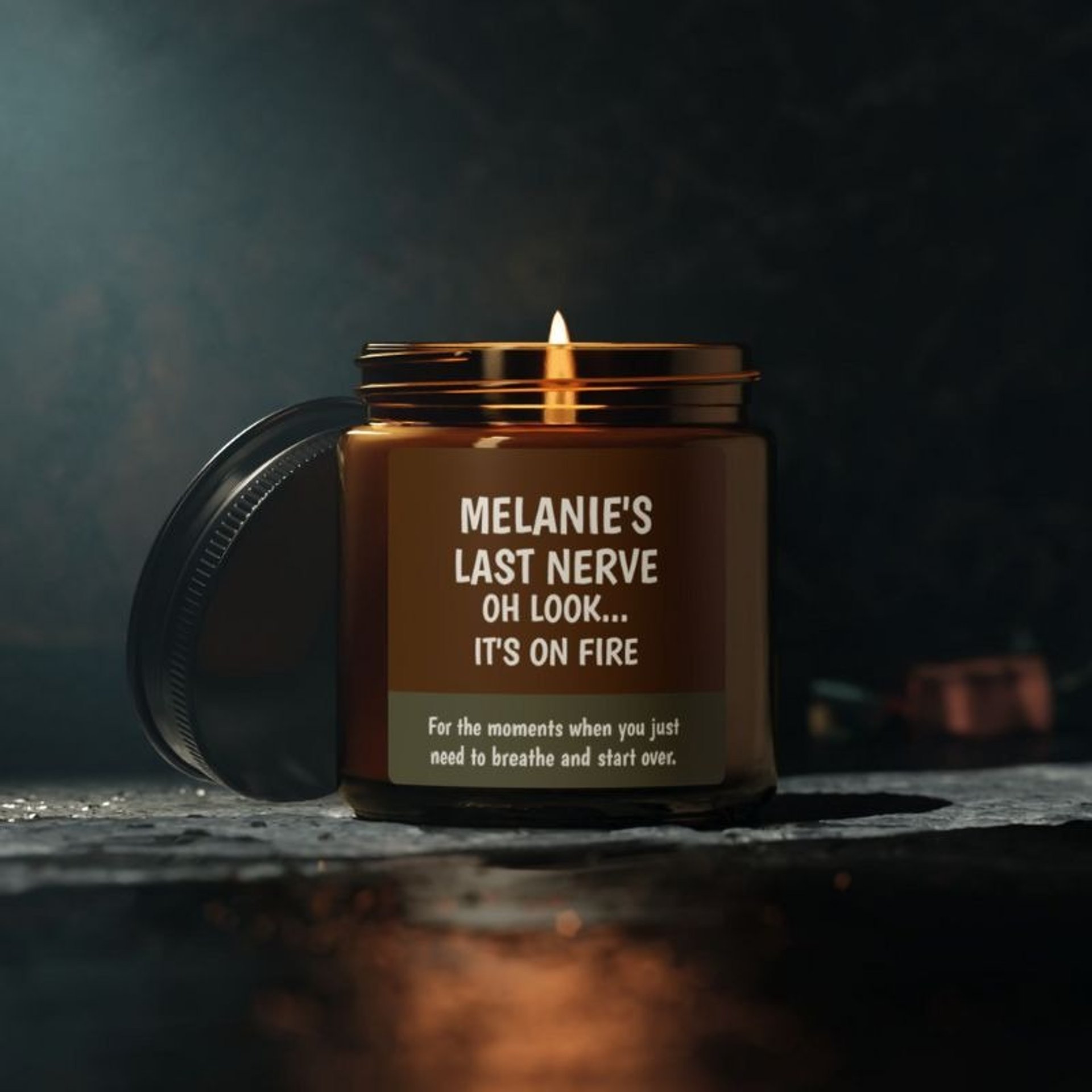 Looking for funny candles? This eco soy wax candle in a reusable amber jar features a witty nudge to reset. Pick a natural scent for the perfect gift.