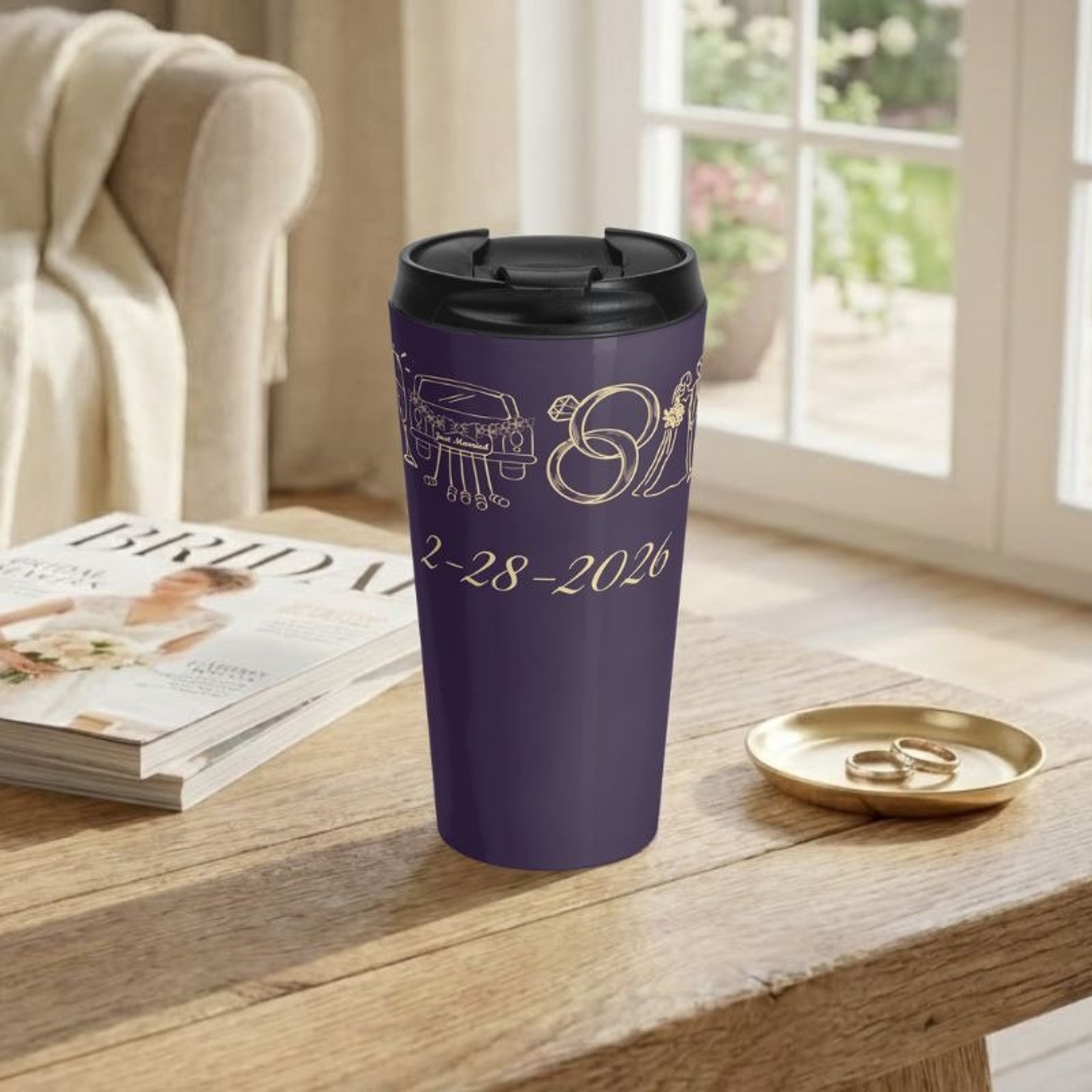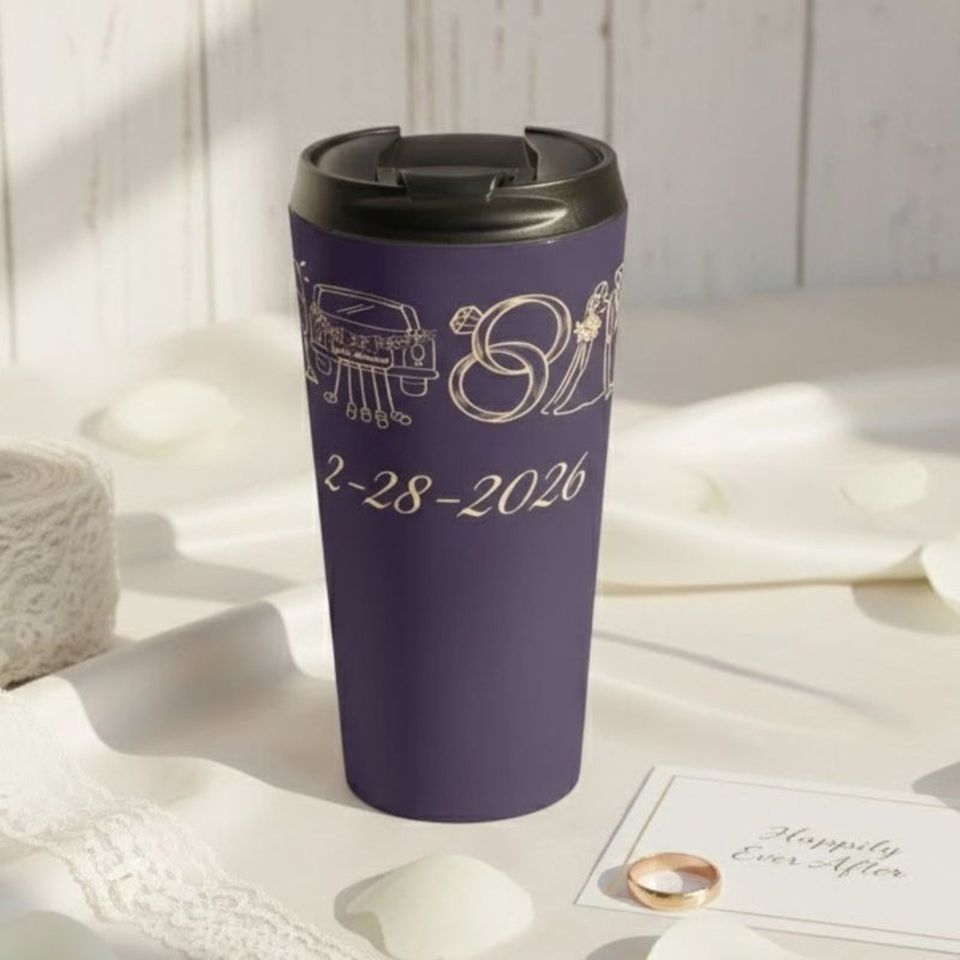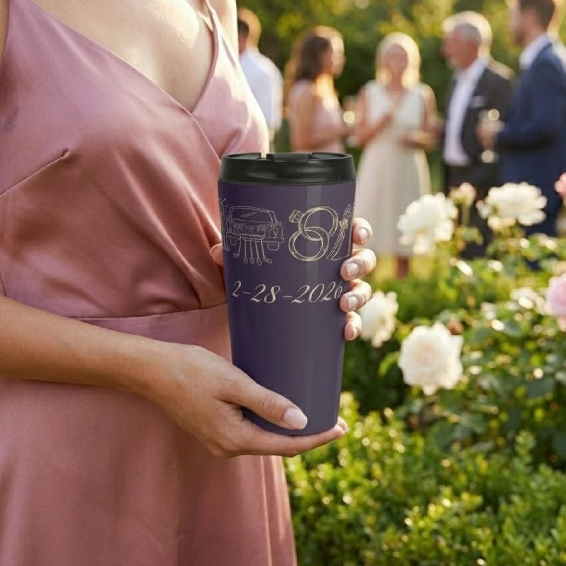 Discover the perfect personalized wedding travel tumbler for your entire group. This sleek 15oz stainless steel tumblers that can be customized with your special date.