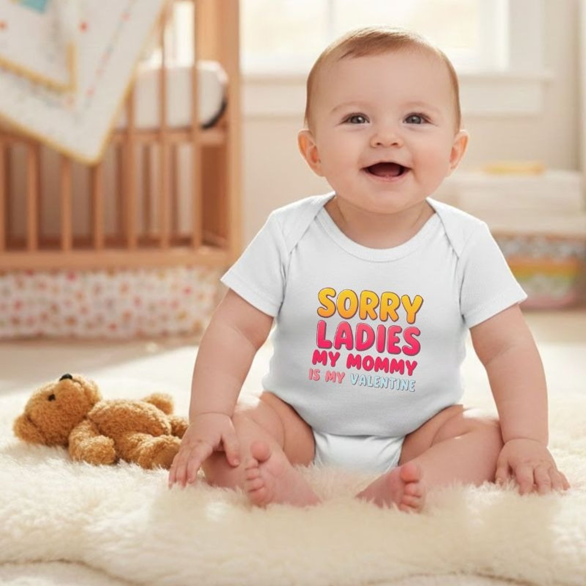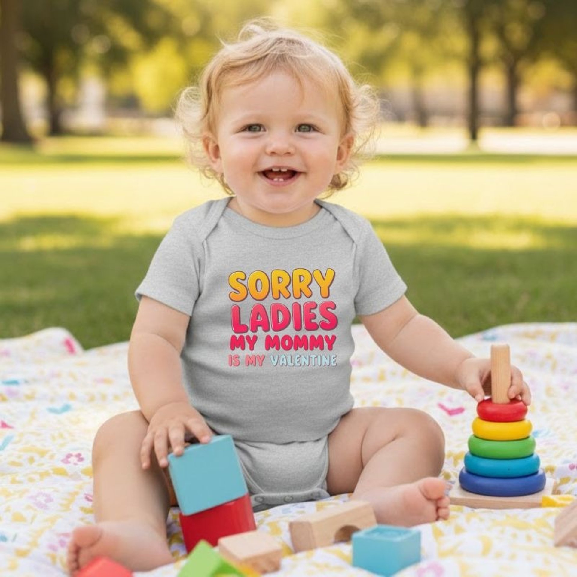 Soft, light, and playfully cheeky. This Sorry Ladies My Mommy Is My Valentine Baby Bodysuit, infant bodysuit brings bright personality to everyday wear. Cozy and cute Valentine's Day outfit!