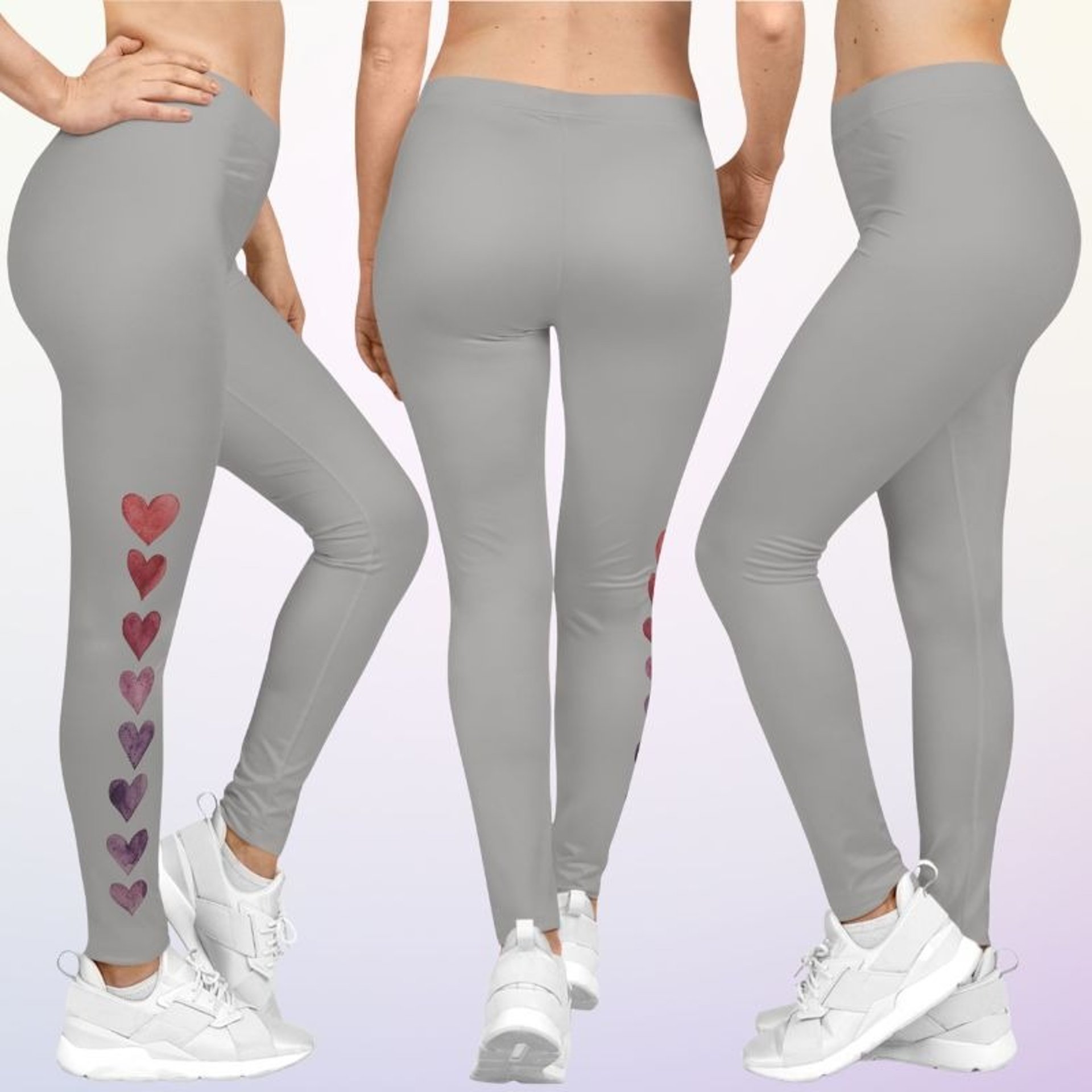 Discover our silky soft Watercolor Gradient Hearts Leggings. Perfect for adding a subtle pop of artistic color to your outfit, these leggings combine comfort and style for a unique fashion statement.