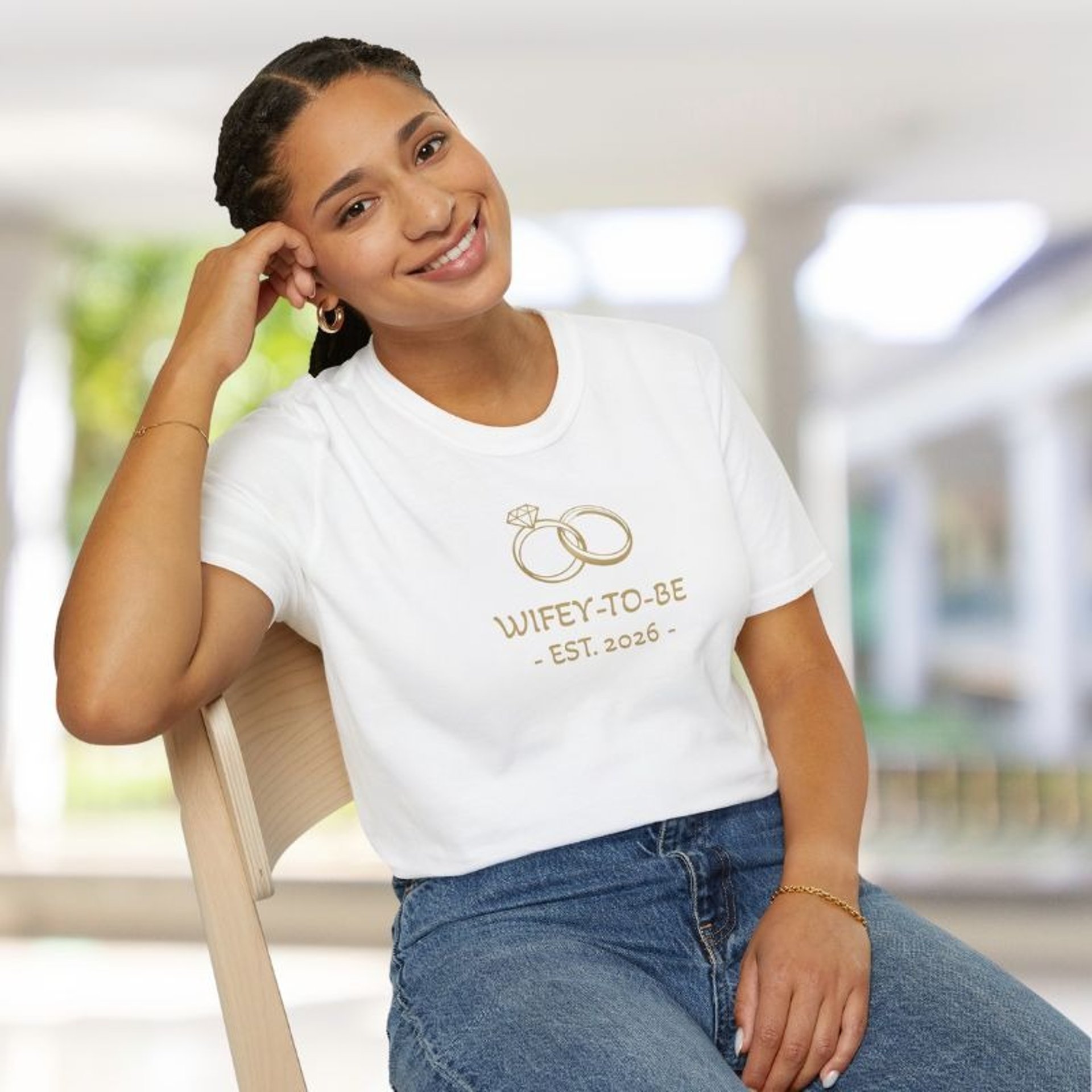 Celebrate your engagement with this Wifey to Be Shirt, featuring a delicate gold ring design and customizable date. Perfect for bridal showers, engagement photos, and more.